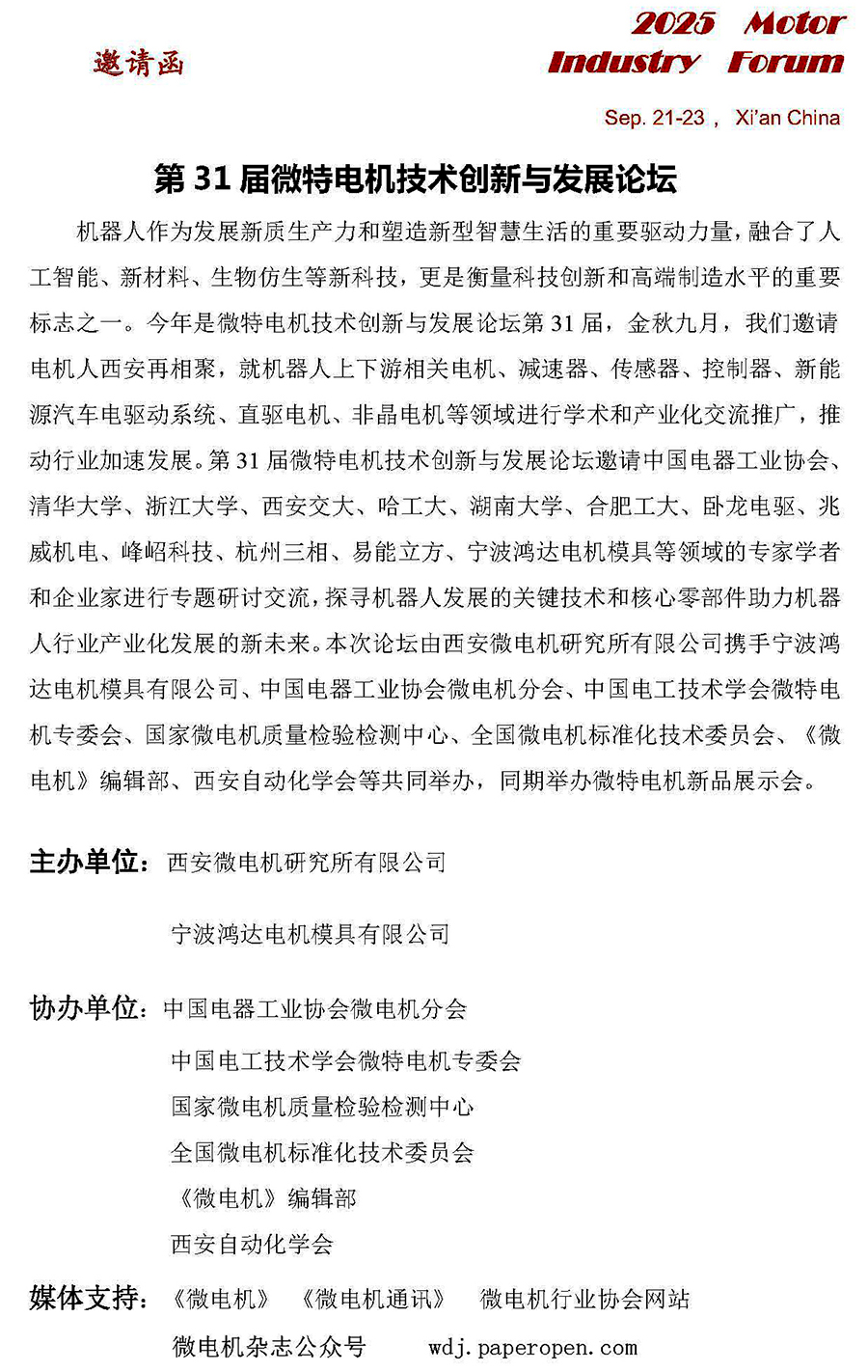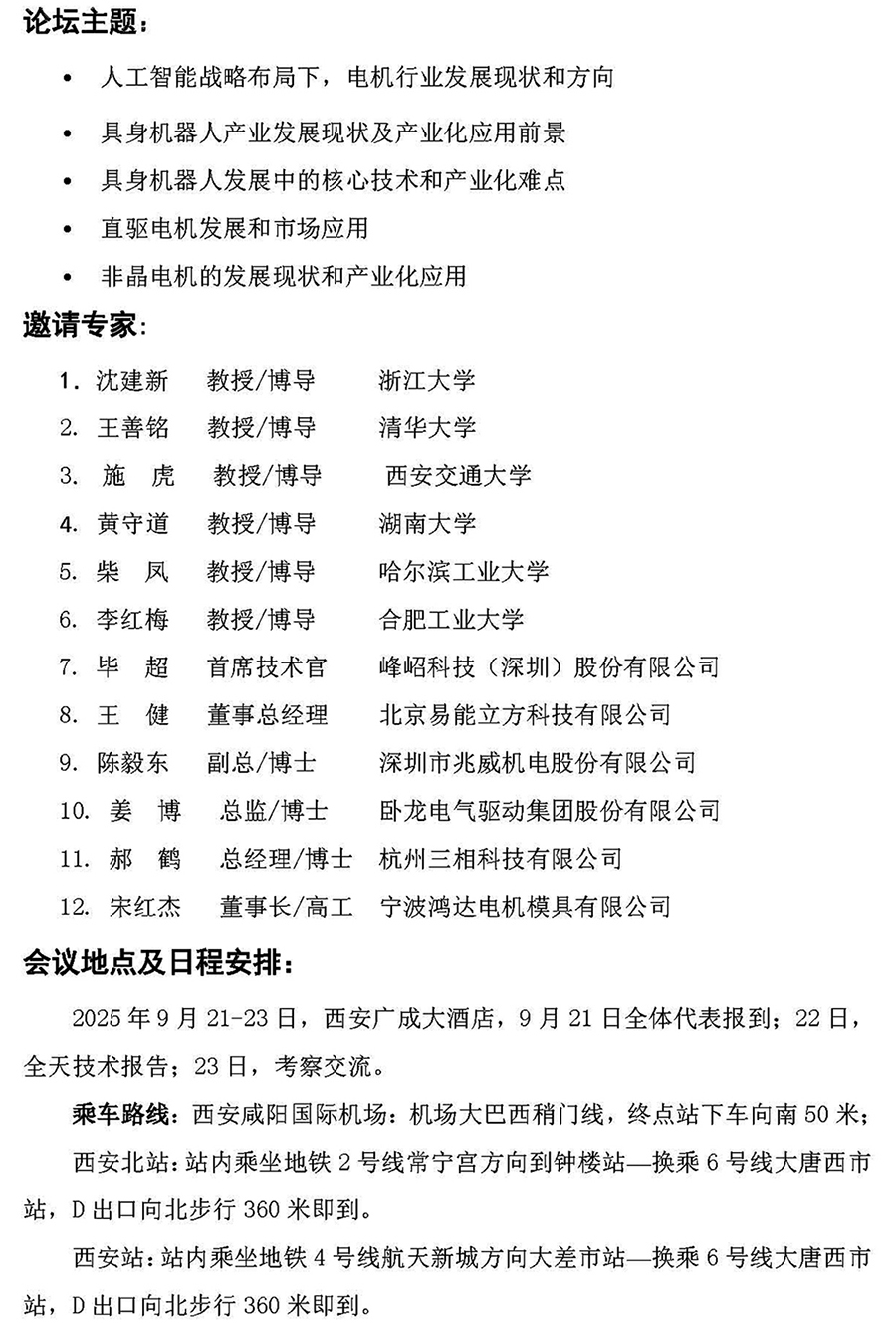 第31屆微特電機技術創新與發展論壇邀請函